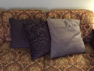 Our cushions were getting a bit dingy. So I sewed some new covers from some samples my mother-in-law gave me. Thanks, Cindy! Yes. They are all different sizes because I measured once and cut and messed up the size of two of them. Oh, well.